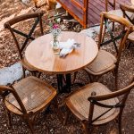 שולחן קפה דגם בולוניה טופ טבעי וכסא עץ דגם כרוס איקס שחור